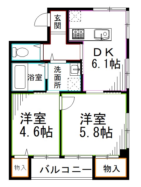 南向き♪角部屋2面彩光☆オートロック付2DK☆